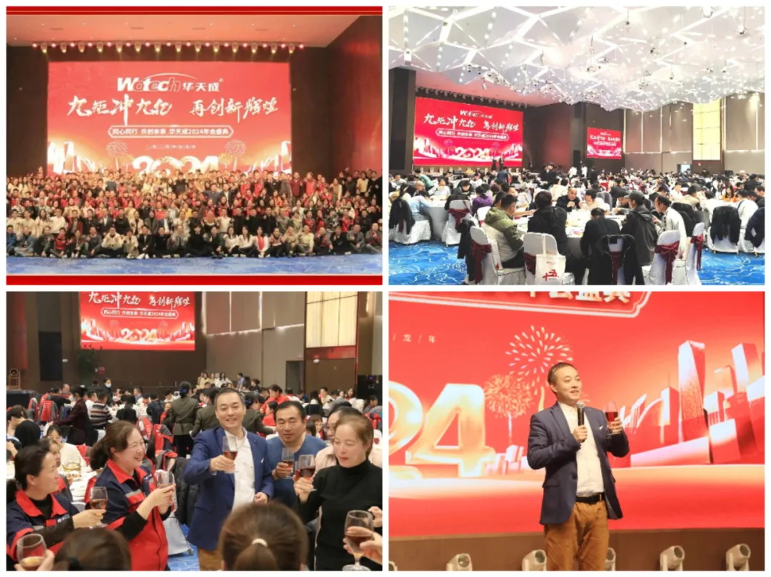 1月,在順德總部舉辦了以“同心同行 共創(chuàng)未來”為主題的盛大年會,來自企業(yè)各部門的300多名員工歡聚一堂,共同見證并展望華天成空氣能在新的一年里的壯志雄心。在2023年企業(yè)效益實現(xiàn)翻番增長基礎(chǔ)上,郭建毅董事長提出了 “2024 沖鋒登頂” 的振奮目標(biāo),為全年發(fā)展定下激昂基調(diào),開啟新征程。