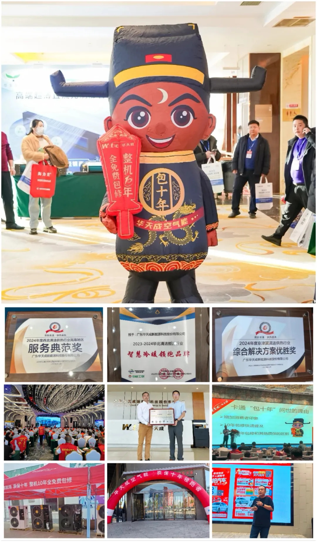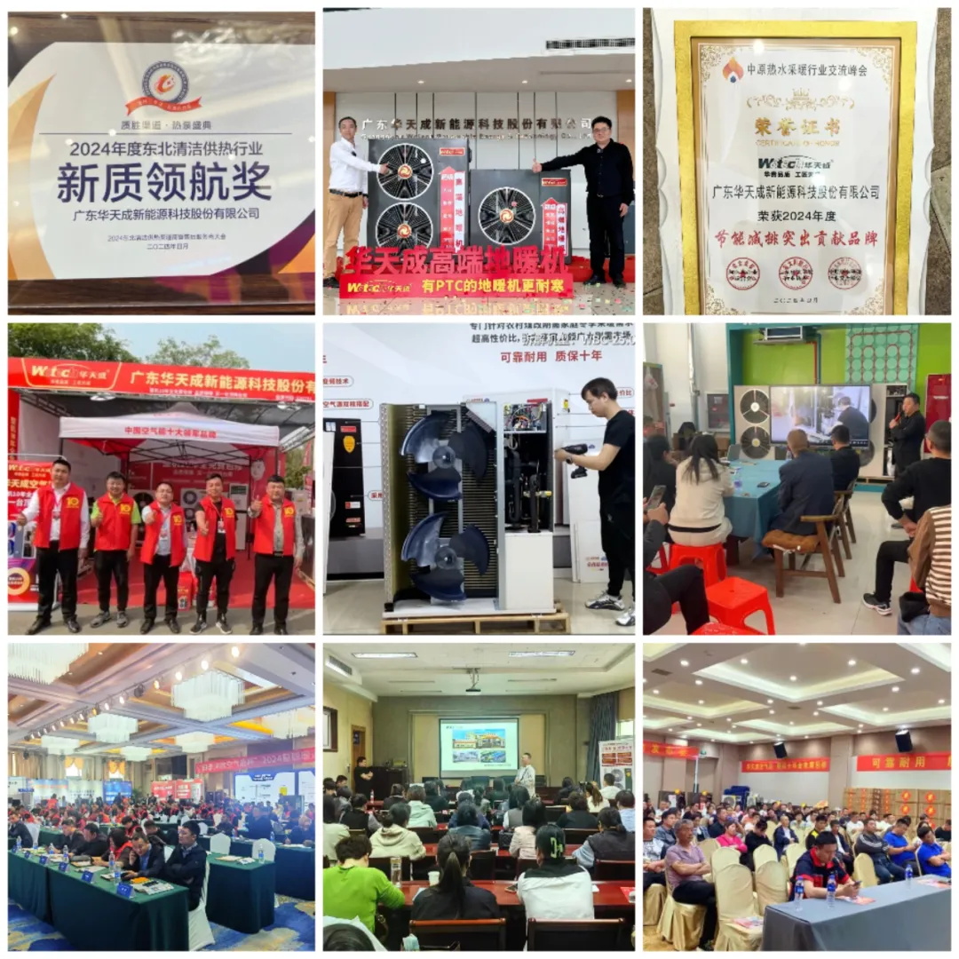 12 月,華天成在行業(yè)榮譽(yù)方面收獲頗豐。董事長郭建毅以行業(yè)唯一主旨報告人身份出席首屆科學(xué)家創(chuàng)新大會,攬獲“優(yōu)秀企業(yè)”及“2024 清潔供暖空氣源熱泵行業(yè)?突出貢獻(xiàn)個人”雙項榮譽(yù)。同時,華天成三次冠名“華天成杯”第 18 屆慧聰暖通產(chǎn)業(yè)大會,在此盛會上一舉拿下“2024 熱泵領(lǐng)軍品牌”與“省級十強(qiáng)暖商”稱號。此外,作為行業(yè)唯一代表企業(yè),華天成于第十七屆中國工業(yè)論壇榮獲“廣東知名品牌”殊榮,并且在武漢 2024 中新工聯(lián)清潔能源行業(yè)年會上被授予“熱泵產(chǎn)業(yè)領(lǐng)航品牌”,彰顯出其在空氣源熱泵行業(yè)的卓越地位和強(qiáng)大影響力。
