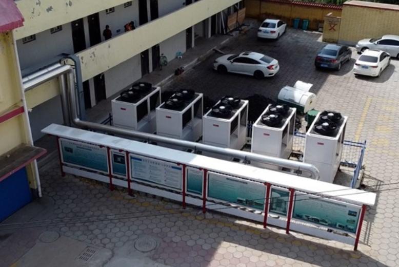 采暖熱泵多是安裝在我國的北方地區(qū),北邊冬季寒冷,因此要求熱泵有很強的耐低溫能力,而華天成超低溫空氣能熱泵正是這樣一款產(chǎn)品。以山西寧武縣東寨中學(xué)工程為例,采用了華天成天馳款5臺超低溫60匹供暖機組為1500平方米的校區(qū)進行供暖。