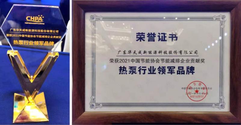 導語:在2022年中國熱泵行業年會上,華天成空氣能斬獲多項榮譽,蟬聯由中國節能協會頒發的“熱泵行業領軍品牌”桂冠!
