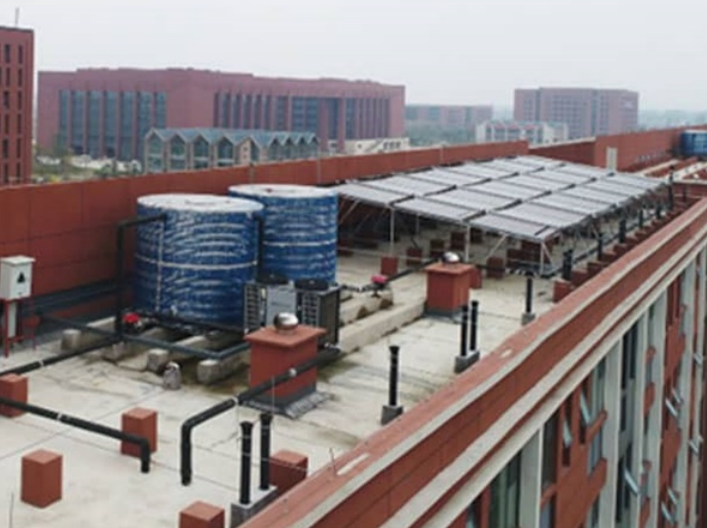 山東臨沂科技職業學院一直非常重視對學生公寓的管理,在了解到華天成空氣能熱水機運行節能,熱水輸出量大且穩定等諸多優點后,便當即決定摒棄老舊的熱水制取設備,改用華天成空氣能熱水機組來升級改造學生公寓熱水系統。